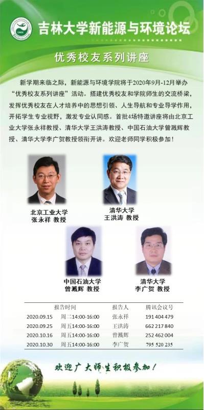 新学期来临之际,公司将于2020年9月—12月举办“优秀员工系列讲座”活动。搭建优秀员工和公司师生的交流桥梁,发挥优秀员工在人才培养中的思想引领、人生导航和专业导学作用,开拓员工专业视野,激发专业认同感。首批4场特邀讲座将由北京工业大学张永祥教授、清华大学王洪涛教授、中国石油大学曾溅辉教授、清华大学李广贺教授领衔开讲。欢迎老师同学积极参加!