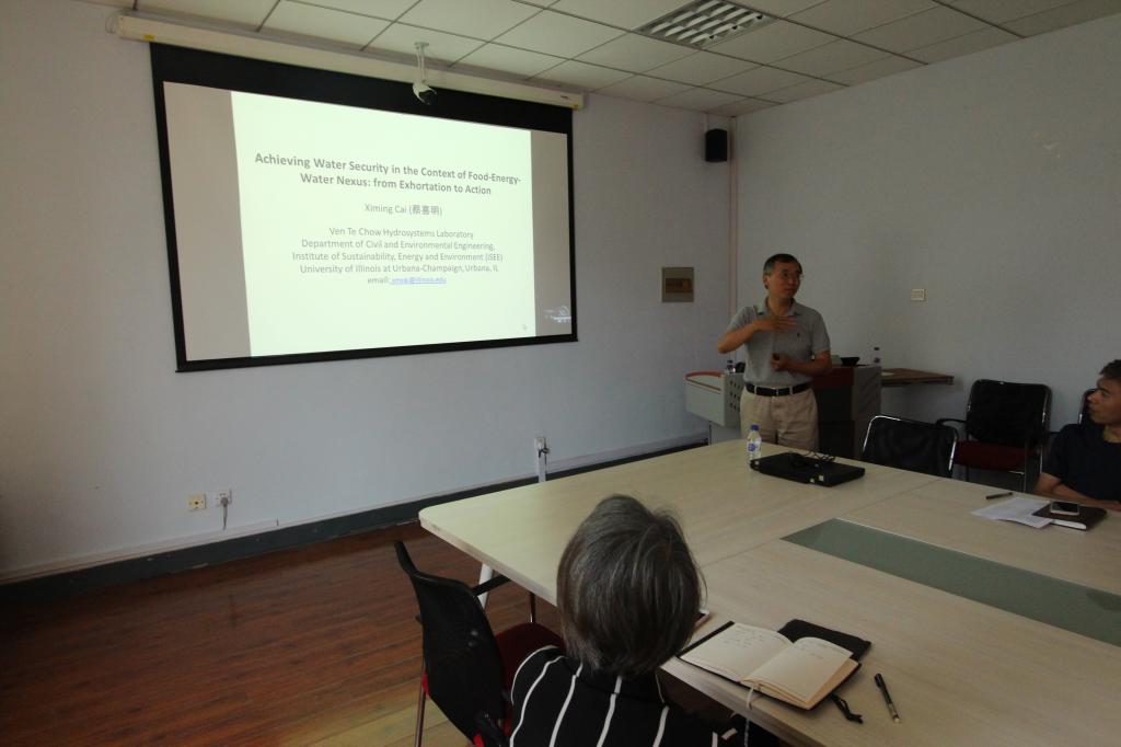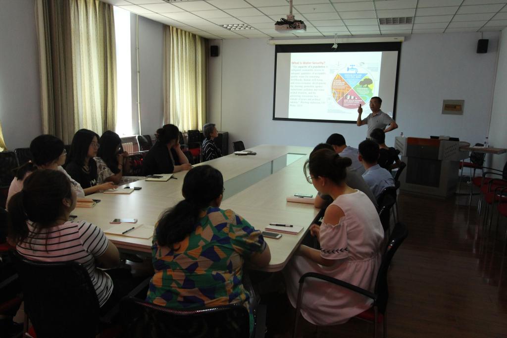 座谈会后, 蔡喜明教授与BEATS师生作题为 “Achieving Water Security in the Context of Food-Energy -Water Nexus : from Exhortation to Action” 学术报告。此学术报告由地下水科学与工程系李鸿雁教授主持,在报告会上,蔡喜明教授阐述了水环境安全管理的相关研究,以全新的食物-能源-水环境科研体系为新能源与环境的师生拓宽了科研思维。师生们对蔡喜明教授的研究课题表示很感兴趣,并与蔡教授就水环境安全问题进行了深入探讨,收获颇丰。