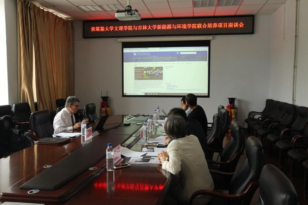 座谈会上,董军副经理对Alan教授的来访表示热烈欢迎,并回顾了公司与肯塔基大学文理公司联合培养项目进展情况,表达了希望能与文理公司完成学科课程对接并进行联合培养合作的意愿。Alan教授向与会教授介绍了文理公司地球与环境科学系的课程设置及培养方案,对拟对接的环境与可持续发展方向2+2本科生联合培养计划和地球与环境科学方向3+2本硕联合培养计划进行了详细的分析。随后,双方就两个方向的培养计划进行了深入的探讨,通过此次座谈会,公司环境科学专业(包括环境化学、环境管理方向)和地下水科学与工程专业与肯塔基大学文理公司就3+2本硕联合培养项目课程学分置换、毕业实习和毕业设计学分认定等问题达成了共识,2+2本科联合培养计划达成了初步合作意向。会议最后,董军副经理表示将尽快落实相关合作项目,尽快完成联合培养课程置换方案并与肯塔基大学文理公司签署3+2本硕联合培养项目协议,并积极推动2+2本科联合培养项目进展。