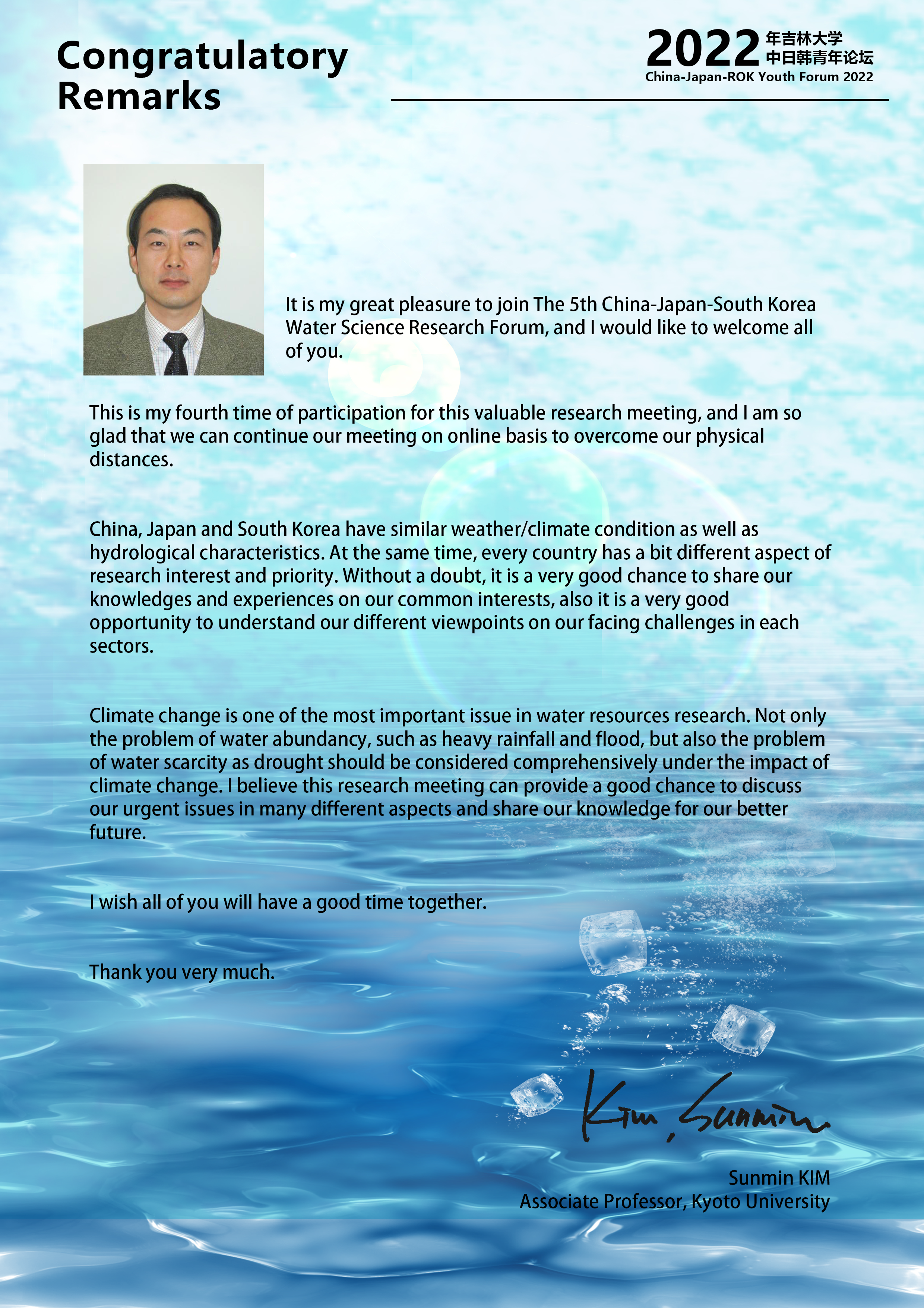 由BEATS主办,韩国忠南国立大学、日本京都大学协办的第五届中日韩水科学研究论坛将于2022年11月19—20日以线上会议方式召开,围绕BEATS“中日韩青年论坛”,以“Building Secure and Smart Water Systems in the Uncertain Future”为主题,聚焦专业前沿性问题,为变化环境下水资源合理开发利用和保护提供对策。