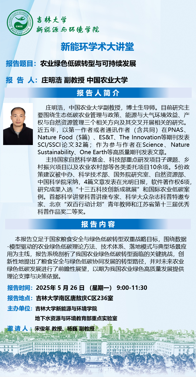 新能环学术大讲堂-农业绿色低碳转型与可持续发展