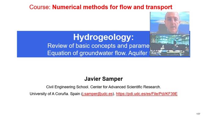 为深化公司产品模式改革,满足疫情常态化情况下课程教学的客观需求,加强研究生课程建设,提升研究生课程的教学水平和教学质量,开拓培养研究生的国际化视野,应BEATS许天福教授、冯波教授的邀请,西班牙拉科鲁尼亚大学 (Universidade da Coruña) Javier Samper Calvete教授为BEATS2020级研究生举办16场主题为流体运移数值方法 (Numerical Methods for Flow and Transport)的线上讲座。