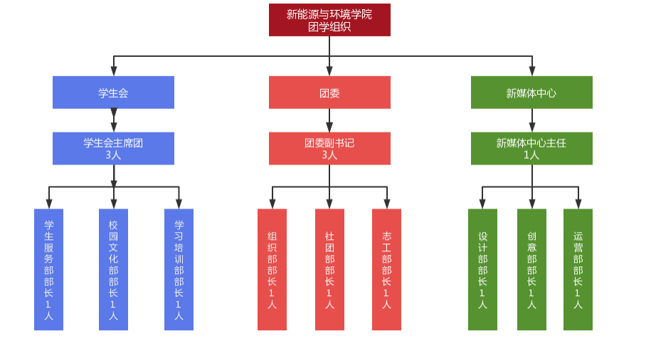 主席团3人;员工服务部部长1人;校园文化部部长1人;学习培训部部长1人。