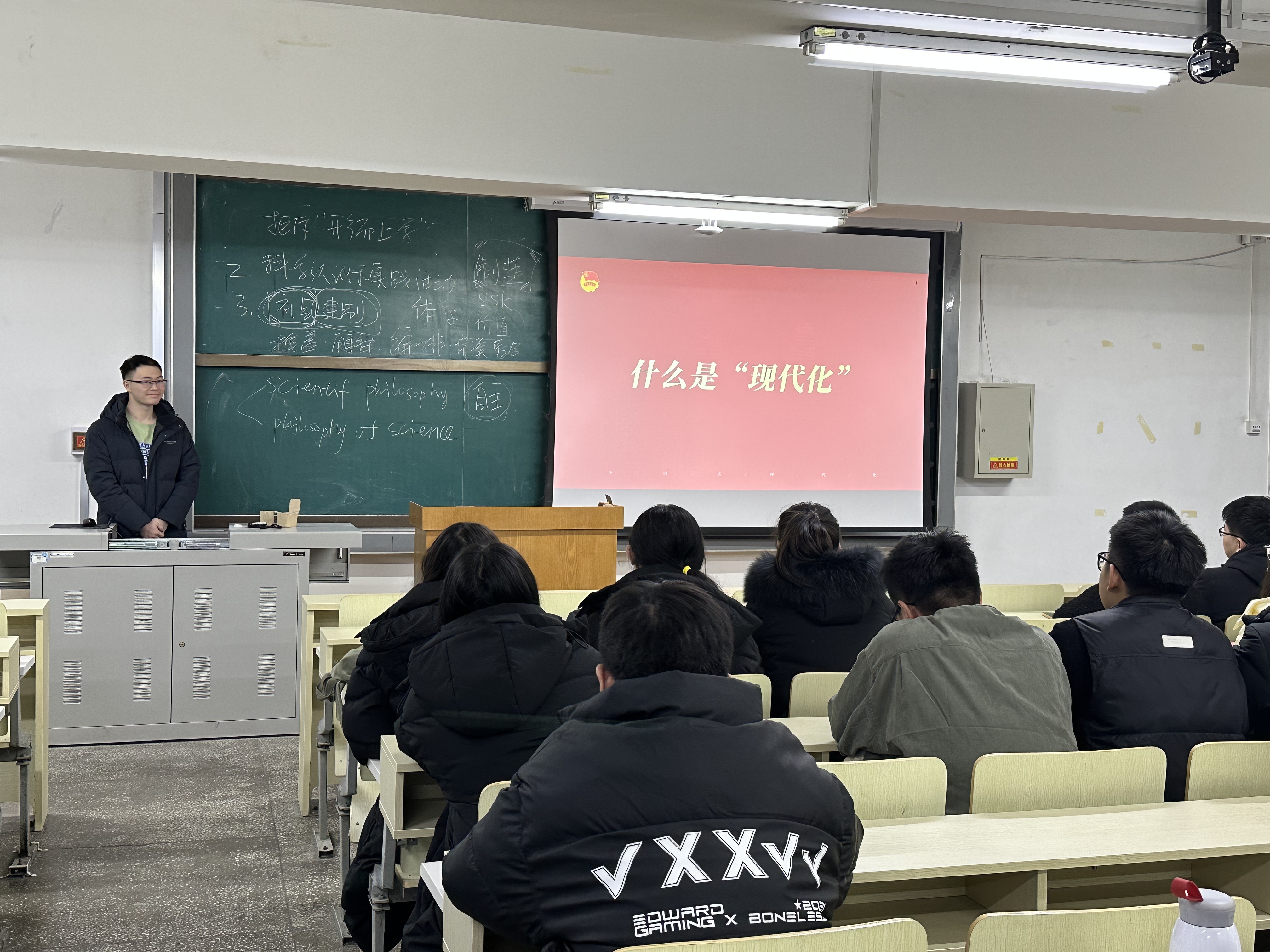 为深入学习党的二十大关于全面建成社会主义现代化强国,以中国式现代化全面推进中华民族伟大复兴战略和习近平总书记的相关重要论述,动员引领团员和青年认真学习领悟二十大报告中蕴含的强大真理力量,切实体会党的二十大报告的独特思想魅力,真正做到学深悟透、融会贯通、真信笃行,为强国复兴的伟大事业注入强大的青春力量。2023年11月24日下午4:30,BEATS2023级环境工程系研究生团支部在水工楼419开展了“强国复兴”主题团日活动,团支部共有三十余名同学参加本次活动。本次团日活动由2023级环境工程系研究生团支部书记杨春钰主持,活动分为“什么是中国式现代化”和“在推进中国式现代化中贡献青年力量”两大模块进行学习,分别由李莹琪同学主讲,丁李露同学参与讨论分享。