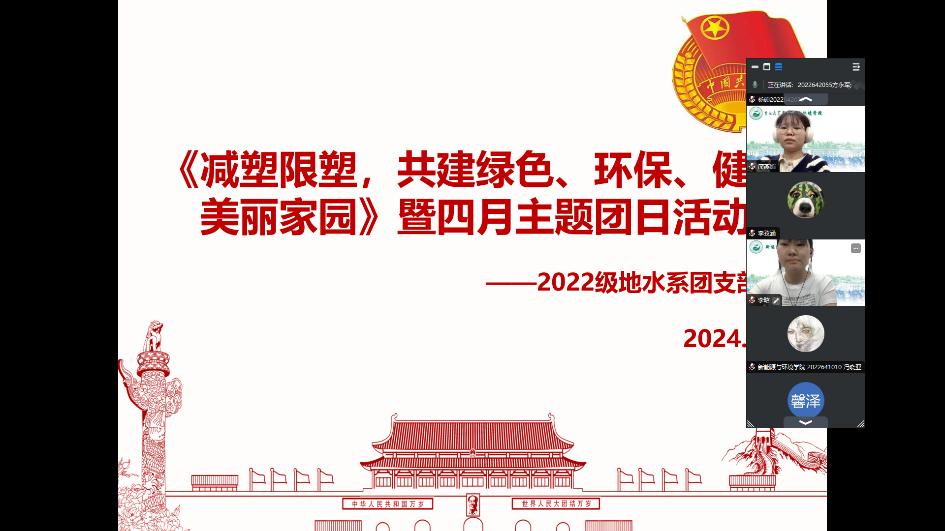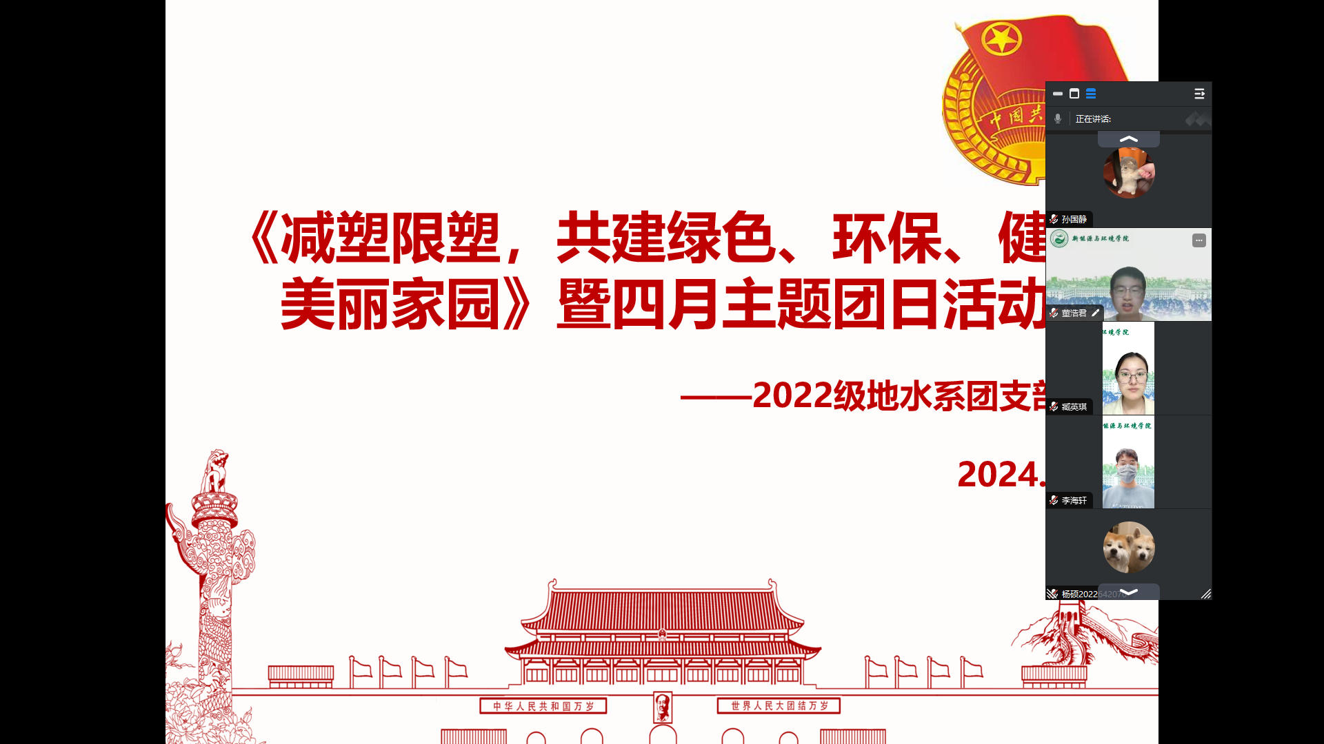 2024年4月22日是第55个世界地球日,为响应“全球战塑”的主题,BEATS水利类专业2022级研究生团支部开展了“减塑限塑,共建绿色、环保、健康美丽家园”的主题团日活动。