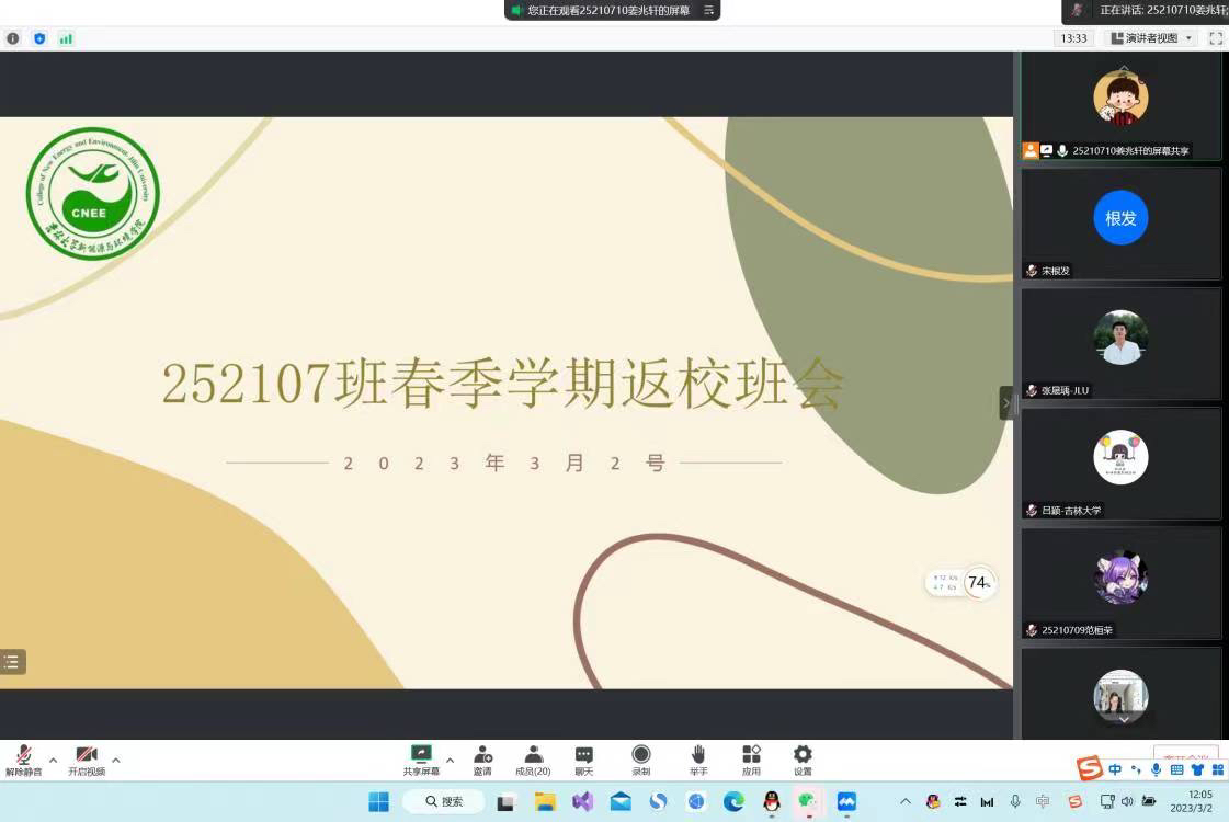 春回大地,兔跃青山,新能环21级学子迎来新学期新气象。3月2日中午,在班主任吕颖老师、张晟瑀老师的带领下,BEATS252107班全体同学在线上召开班会。
