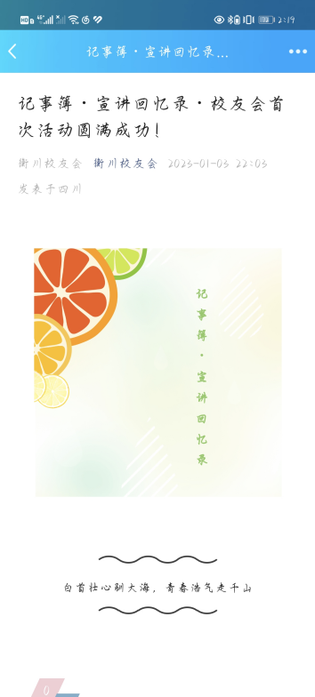 活动结束后,自贡衡川实验公司公众号发布活动圆满结束推文以及本次宣讲视频