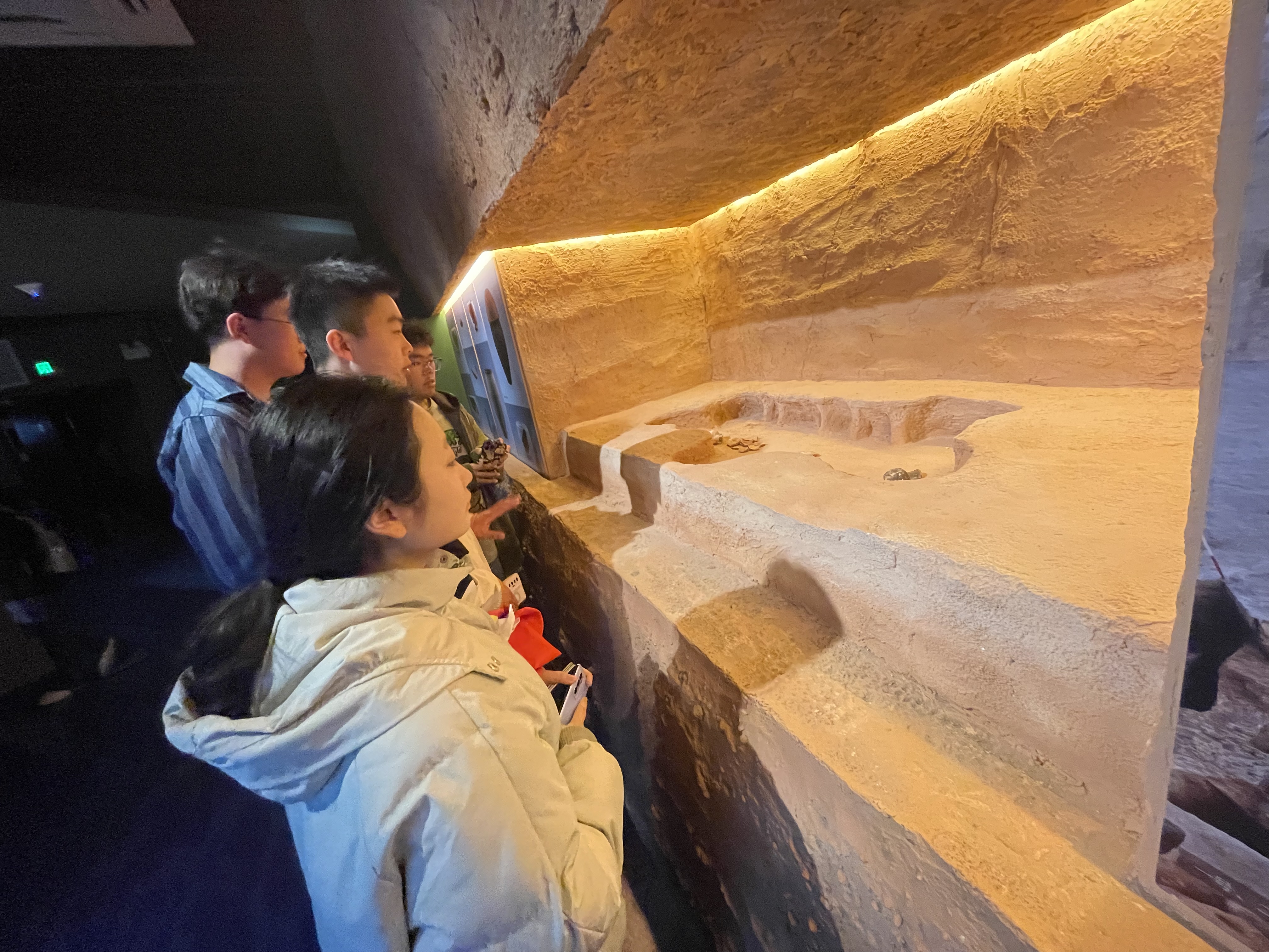 第二个展厅“绿野先踪——考古实证下的东北史前生活”描述了史前时期东北地区先民的居住方式,共分为“穴居、定居、聚居”三个单元,同学们通过参观体会到人类社会循序渐进的发展过程,同时感受到了史前人类的智慧。