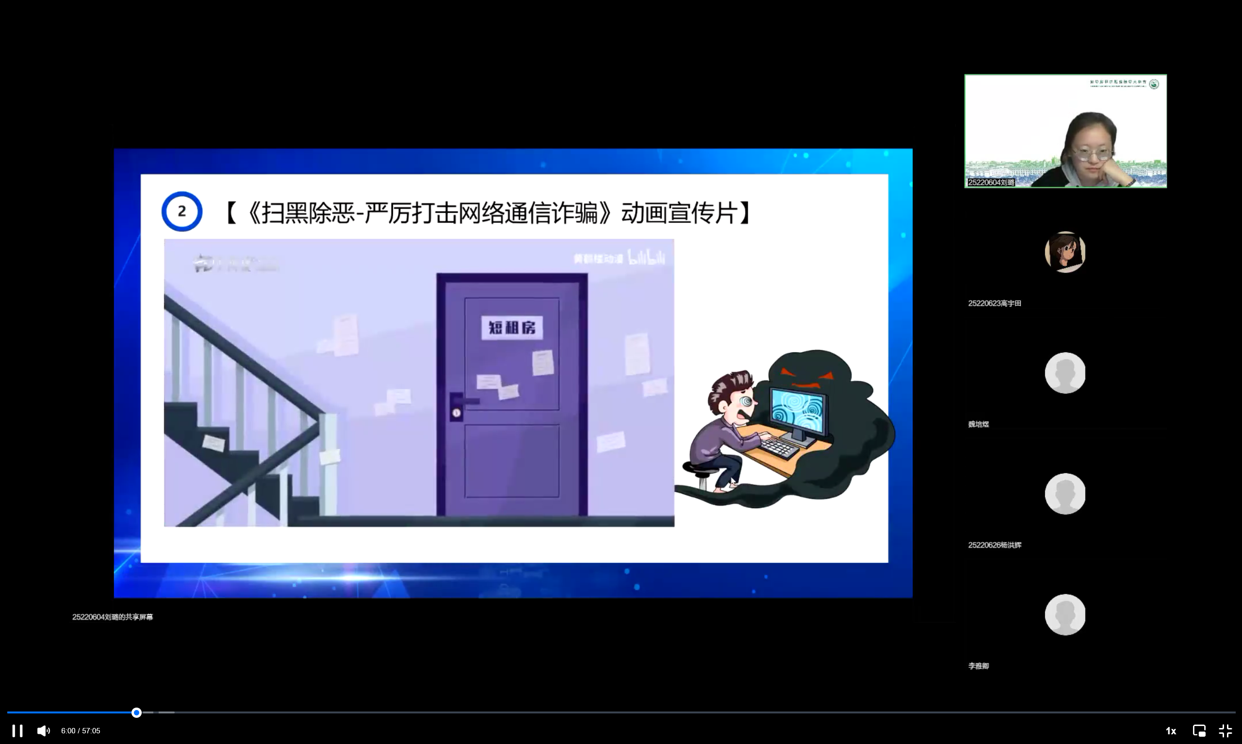 为提高同学们防范电信网络诈骗意识,切实提高广老员工对电信网络诈骗犯罪的识别和应对能力,自觉抵制非法校园贷,维护大家的财产安全,净化校园环境,2023年4月12日晚上19时,BEATS252206班同学在团支书刘璐的带领下,线上开展了以“防范诈骗擦亮眼 拒绝诱惑心不贪”为主题的团日活动。