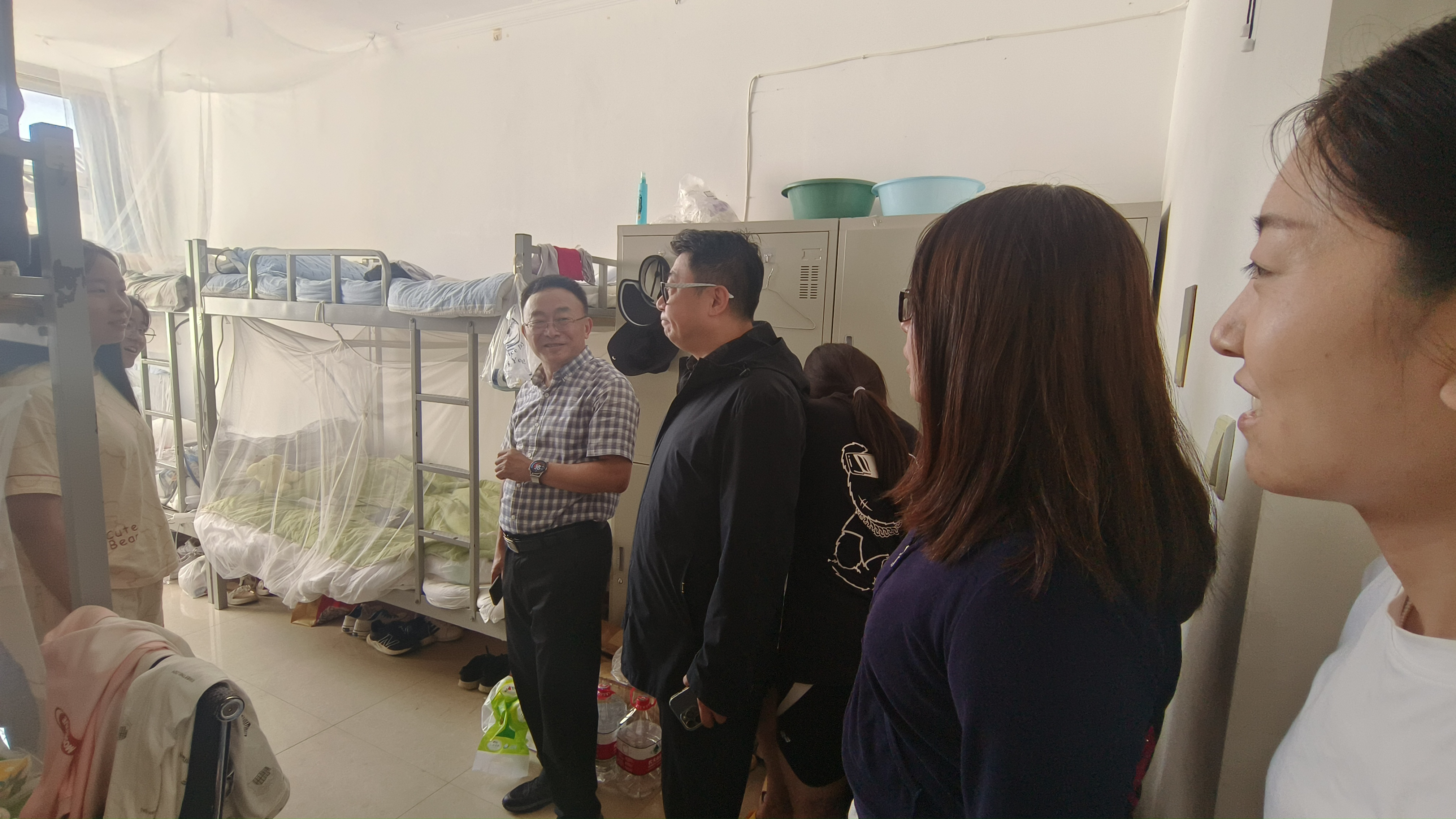 9月21日下午,汪书记一行首先来到教师公寓探望公司环境科学实习教师团队,代表公司关心慰问,了解本年度实习计划与进展,询问教学实习困难并加以解决。随后,党委书记汪祥松、副书记吴哲、教学办公室主任刘南、2021级辅导员李薇共同前往员工公寓走访,实地了解实习员工学习生活情况。“食堂伙食怎么样?野外实习还能够适应吗?”走访中汪书记多次询问大家的生活情况。同学们纷纷表示食堂的伙食不错红烧肉特别好吃,基地环境很好,凉亭走廊很舒适。刚来到兴城的时候天气还比较炎热,大家在寝室通过开窗开风扇的方式克服,现在天气凉爽寝室已经不需要开风扇了。在适应了实习基地的生活后,野外实习更加顺利,大家对专业能力的提升充满信心。汪书记在了解后,表扬了寝室的卫生状况,肯定了同学们吃苦耐劳、脚踏实地的地学精神,鼓励大家珍惜实习机会,进一步提升个人能力,圆满完成本次的实习任务。