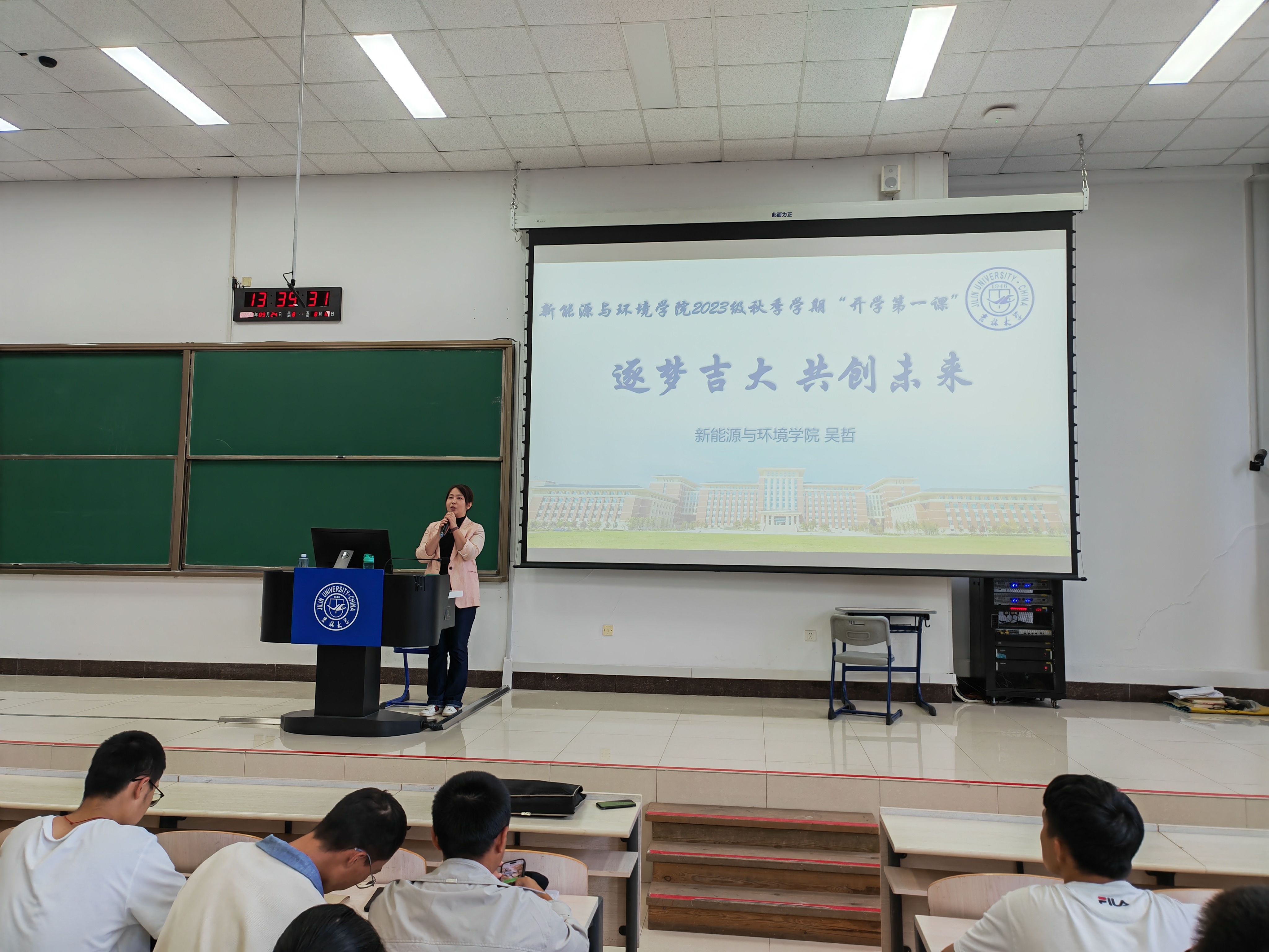 新学期伊始,为了做好员工思想引领工作,帮助员工解决思想问题,让同学们更好地适应老员工活和学习节奏,9月24日,新能源与环境公司党委副书记兼副经理吴哲以“逐梦吉大 共创未来”为主题,为2023级全体本科新生讲授了“开学第一课”。2023级辅导员姜岳彤参与并主持了此次授课。