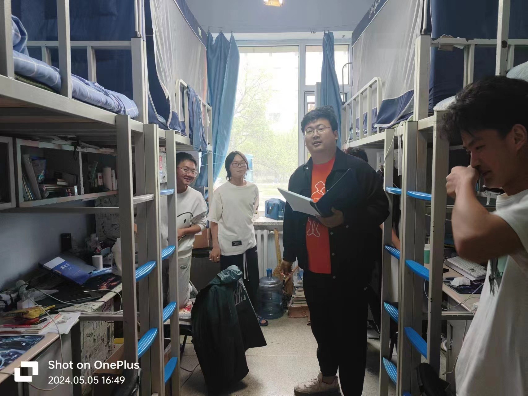5月10日,2020级辅导员霍美汐老师对中心校区南苑一公寓、二公寓寝室进行检查,本次检查重点为寝室卫生,女生寝室整体卫生状态良好,男生部分寝室卫生状态不好,霍老师督促员工们及时打扫寝室卫生,并嘱咐后续会继续抽查,查寝过程中没有发现违章电器。