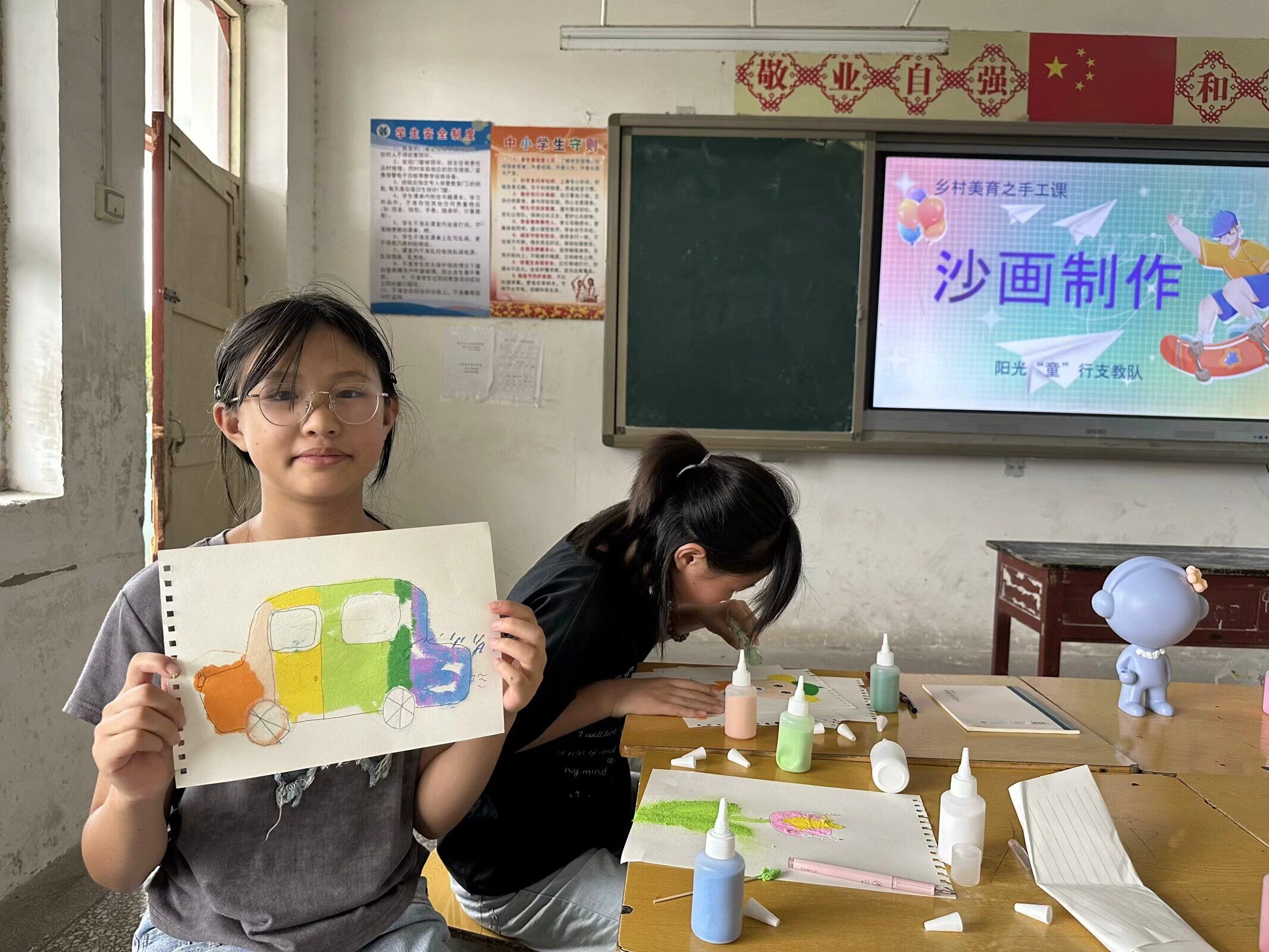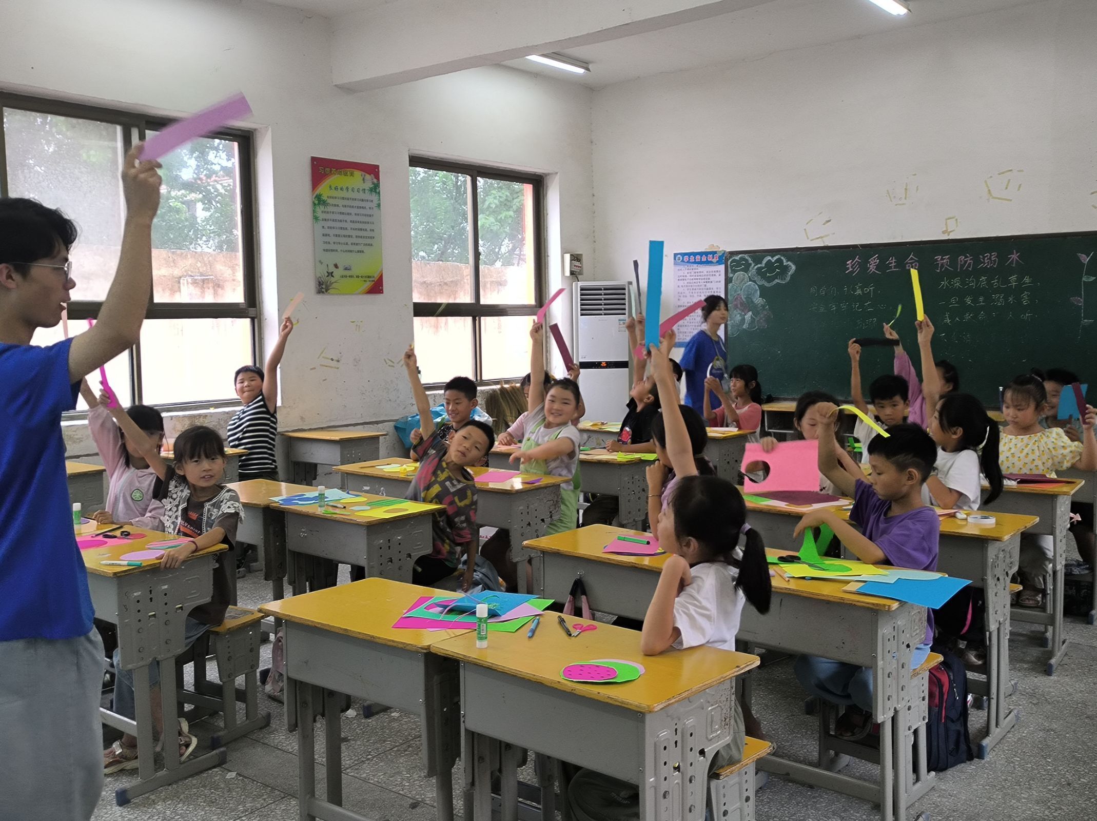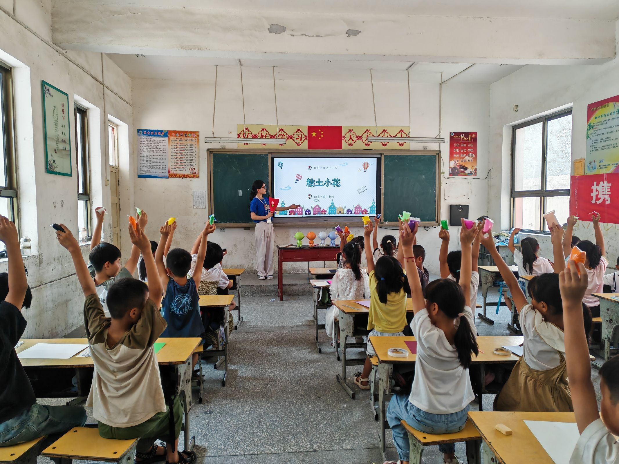 “老师,今天是那个年级上手工课呀?”“老师,六年级今天上生态文明课吗?”在保证课程的连贯性和系统性下,支教队为了让同学们在学习中充满期待和惊喜,进一步提升创造美的能力,引入“抽盲盒”式的排课方式。将每天的最后一节课定为美育兴趣课,但不提前告知同学们当天的具体课程。在这种模式下,每节课都是一个未知的礼物,充满了神秘和期待,也增加了课程的吸引力和乐趣。对于这节课,同学们就像打开一个盲盒,总是满怀好奇和激动,想要看看里面藏着什么惊喜。通过这种创新的教学方法,支教团为同学们带来更加丰富和精彩的课堂体验,激发了学习热情,挖掘了创造的潜力,帮助大家在快乐中不断成长和进步。