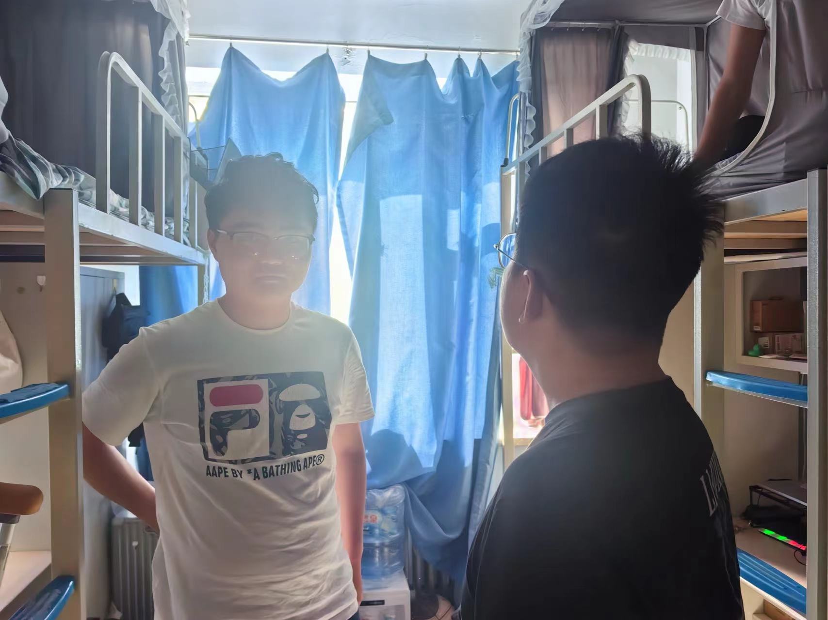 9月6日,2023级辅导员姜岳彤老师进入南苑一公寓员工寝室,重点检查寝室卫生,提醒卫生情况较差的寝室即使打扫,总体卫生情况良好。同日,姜老师来到《概率论与数理统计》课堂抽查出勤情况,本次课程共1人请假,2人迟到,其余同学均按时到课。