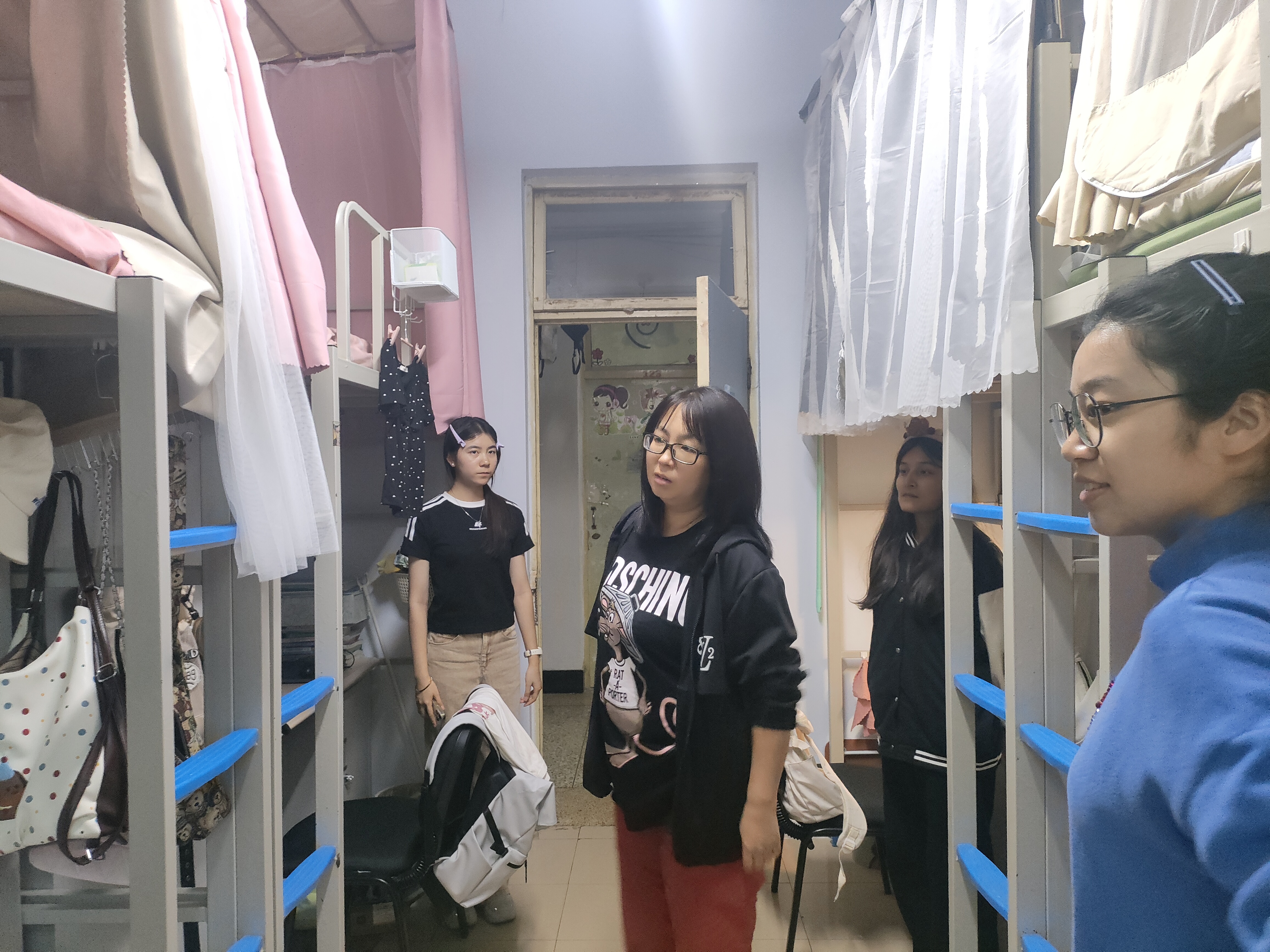 9月26日2021级辅导员李薇对水文与水资源专业必修课《水文预报》进行查课,同时和任课老师沟通了解课程进程。本次课程选课40人,共有3人迟到,1人未到。9月29日,李老师对前卫南区南苑一公寓、二公寓进行查寝,检查寝室卫生和消防安全情况,同时祝贺推免员工,了解升学去向,并提醒同学们假期出游注意安全。