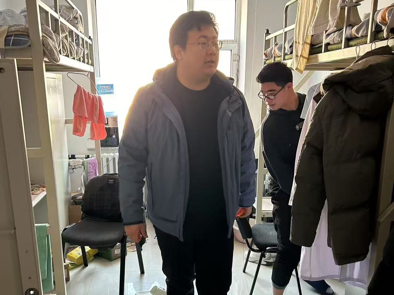 3月18日,2024级新生辅导员助理姜兆轩进入南苑一公寓检查寝室卫生情况和消防安全情况,同时提醒同学们本学期课程较多,要制定科学的学习计划保证每门课程取得良好的学习效果。
