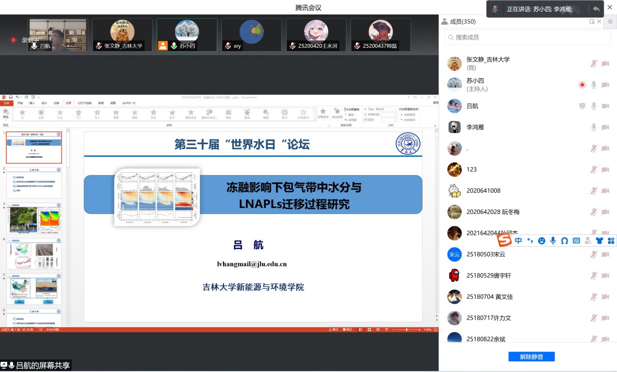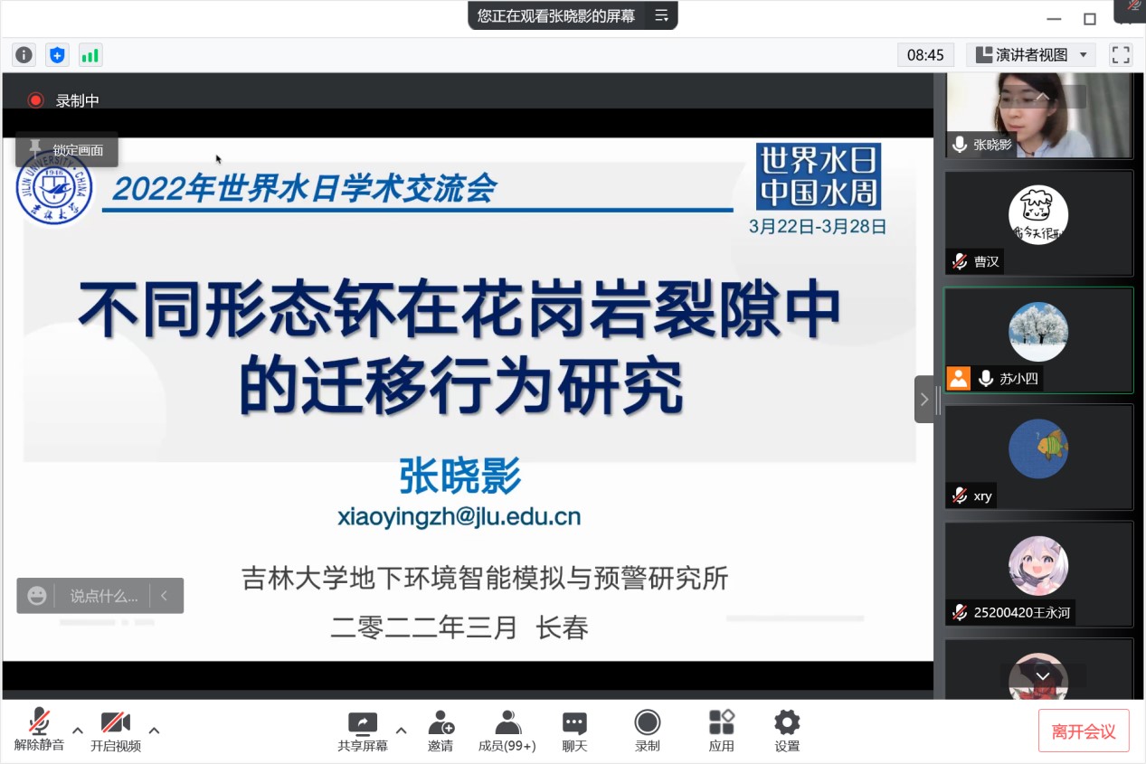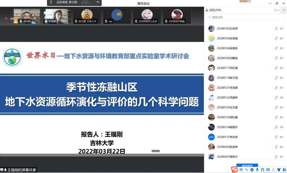 为深入落实习近平总书记“节水优先、空间均衡、系统治理、两手发力”治水思路,共同探讨地下水保护与利用的平衡之道,3月22日下午BEATS、水资源与环境研究所与地下水资源与环境教育部重点实验室共同组织召开了迎接2022年世界水日学术交流会。会议由水资源与环境研究所所长苏小四教授主持,公司领导、相关教师和研究生、本科生同学350余人在线参加了此次学术交流。