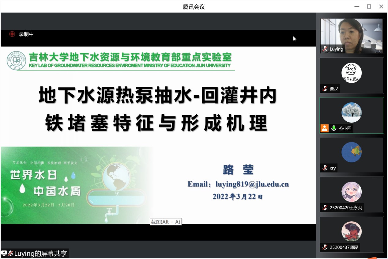 会议开始,地下水资源与环境教育部重点实验室主任、BEATS经理许天福教授简要回顾了世界水日的由来和主旨,重点介绍了2022年世界水日和中国水周的活动主题。其后,王福刚教授、冯右骖副教授、吕航副教授、吕颖副教授、张晓影副教授、王宇博士和路莹副教授等7位中重点实验室青年骨干教师围绕寒旱区地下水资源形成与评价、包气带水分运动与污染质迁移转化、花岗岩裂隙中核素迁移、城市海绵城市雨洪过程和流域非点源污染过程模拟、地下水人工补给等主题汇报了各自近年来取得的最新进展,与参会师生进行了积极互动和深入交流。最后,苏小四教授对本次学术交流活动进行了总结。