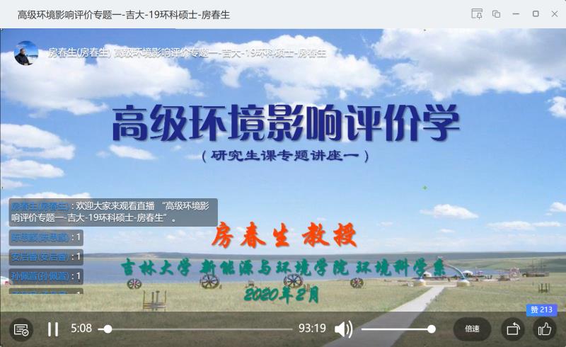 根据公司工作部署和《BEATS疫情防控期间研究生工作安排》的文件要求,公司2019-2020学年第二学期部分研究生课程改为线上教学结合群讨论的形式授课。2月26日上午8时,公司房春生教授开设的环境科学专业硕士研究生专业课《高级环境影响评价学》顺利进行了首次网络直播授课,成为公司第一门在线直播授课的研究生课程。