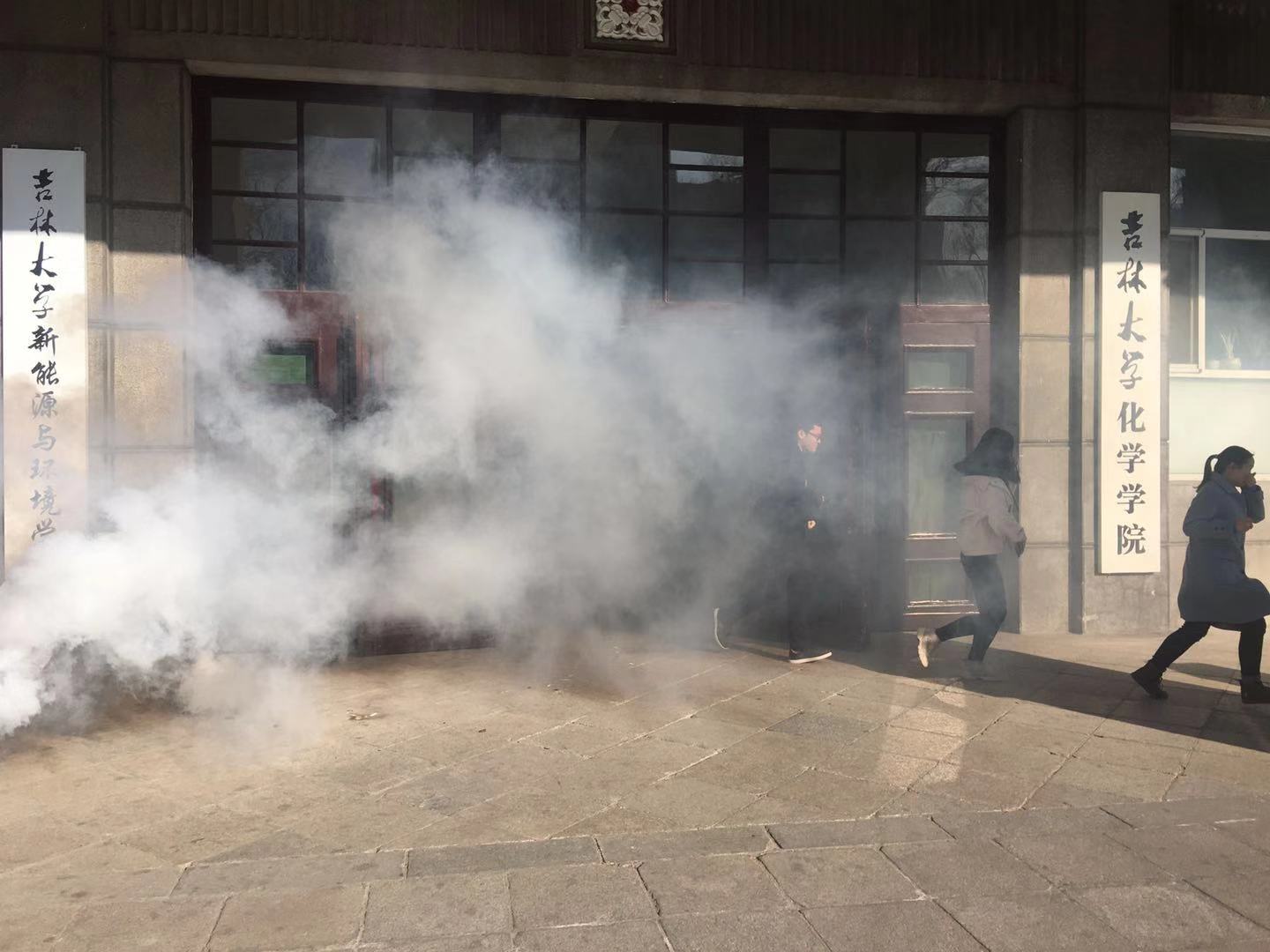 9点30分,消防疏散演练正式开始,模拟理化楼338房间发生火灾,报警响起,参演的师生从所在办公室、实验室、工作室迅速从消防疏散通道撤离,楼内疏散人员按照预先的消防演练预案疏散撤离人员到理化楼门外的集结区,完成了火灾逃生疏散。
