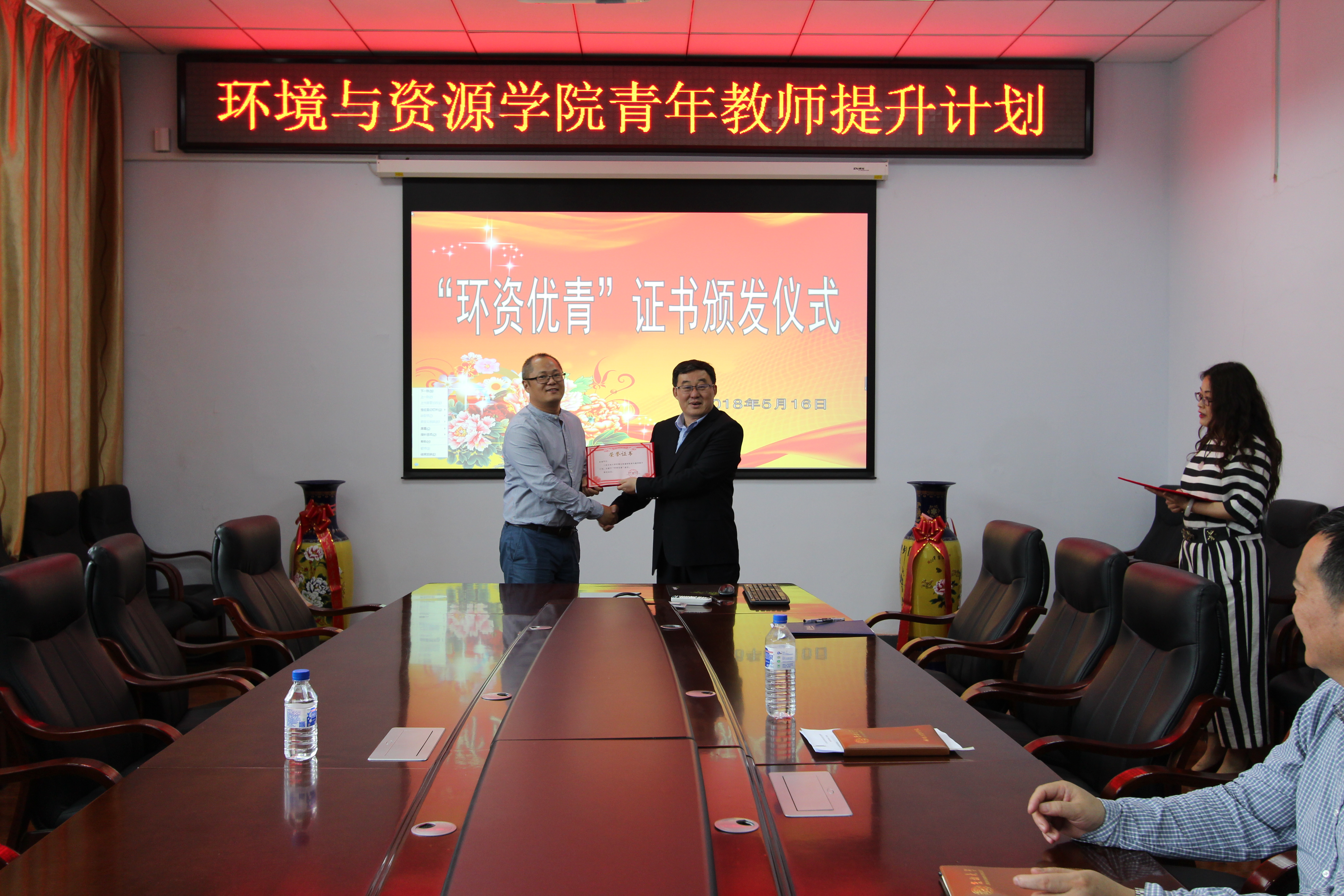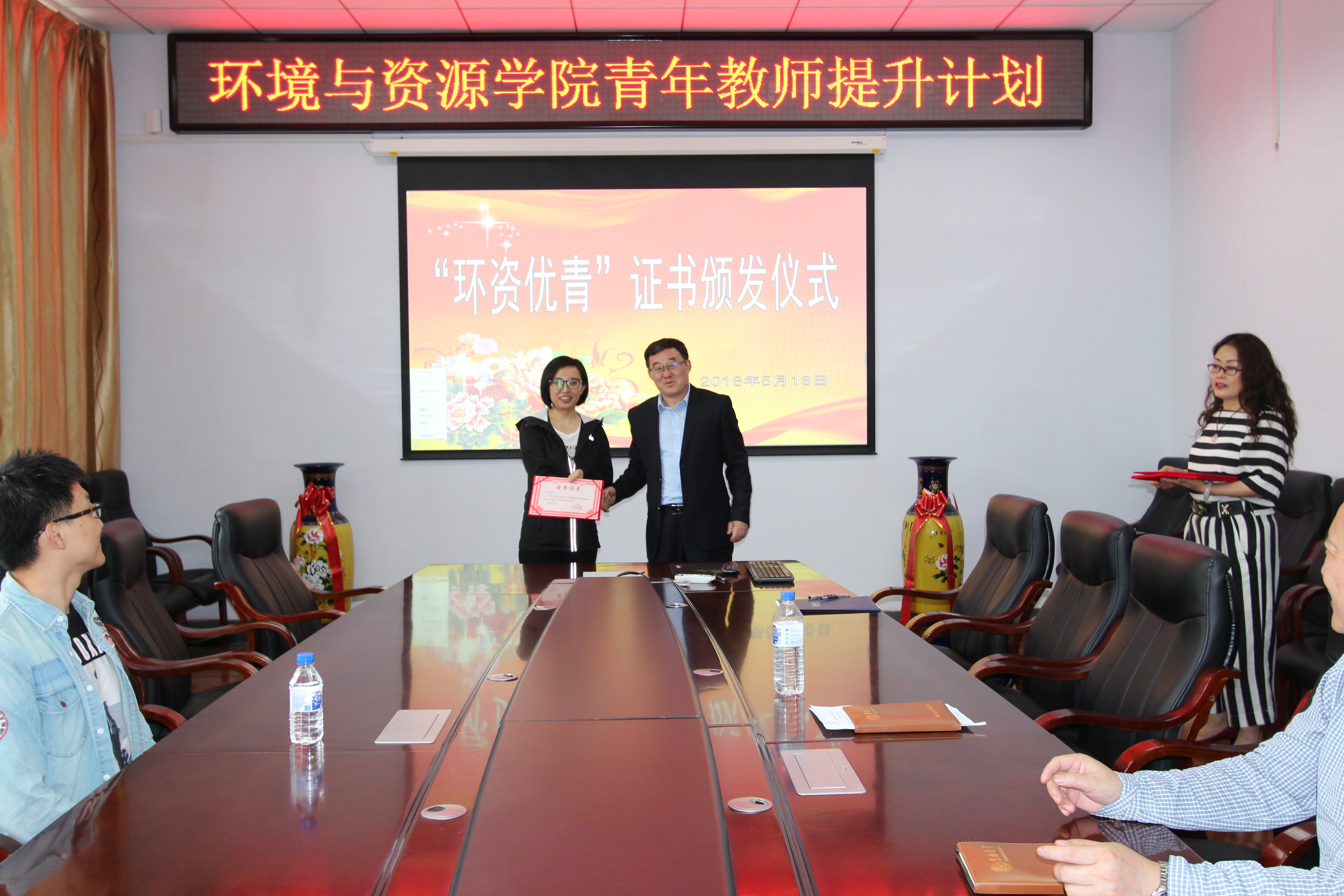 根据《BEATS环境与资源公司青年教师提升(简称“环资优青”)计划》的工作安排5月16日下午,环境与资源公司在北区理化楼260会议室,举行了2018年度“环资优青”证书颁发仪式。公司班子和公司2018年度“环资优青”获得者参加了证书颁发仪式。仪式由分管科研的花修艺副经理主持。