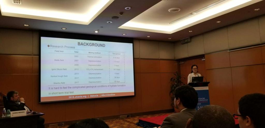 公司许天福教授、辛欣副教授、袁益龙博士、夏盈莉硕士参加了该会议。期间,许天福教授与英属哥伦比亚大学Peter教授共同主持了技术专题报告“Gas Production from Hydrates: Simulation Studies of Flow and Geomechanics”。此外,袁益龙博士作了题为“Evaluation of gas productivity from layered heterogeneity methane hydrate reservoir by depressurization”专题报告,夏盈莉硕士作了题为“Influence of hydraulic connection between the hydrate reservoir and bounding rock on the methane production”专题报告,分别介绍了公司在新型清洁能源天然气水合物试开采领域的研究成果。借助此次在国际会议上做专题报告的机会,展示了公司目前在新型清洁能源天然气水合物试开采领域的研究成果。