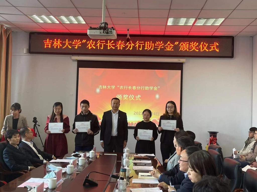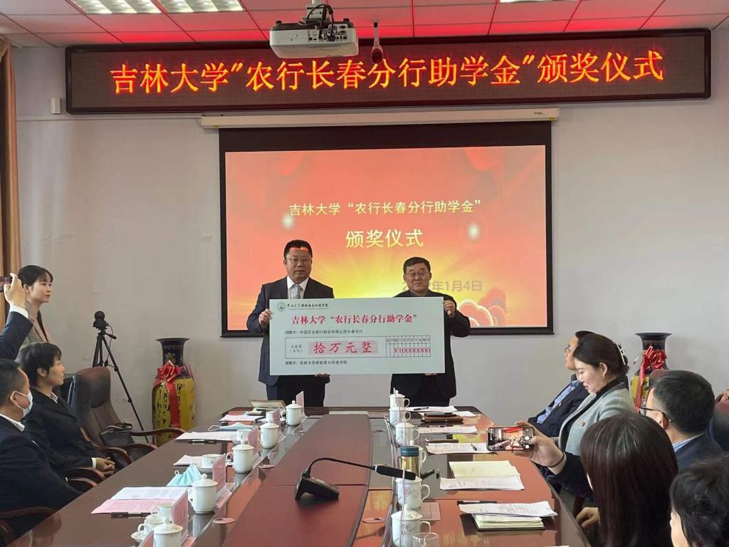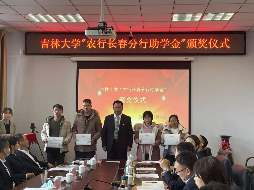 中国农业银行股份有限公司长春分行向公司捐赠助学金10万元,设立BEATS“农行长春分行助学金”,用于奖励公司家庭贫困且品学兼优的老员工。2022年1月4日上午11:00,BEATS“农行长春分行助学金”颁奖仪式在BEATS前卫北区理化楼260会议室举行。农行吉林省分行党委委员、副行长兼长春分行党委书记、行长王金山,农行长春分行党委委员、副行长李韩鹏,农行长春分行党委委员、副行长韩宪军,农行长春分行机构业务部总经理鲍秋颖,农行长春分行网金科技部总经理李云鑫,农行长春分行办公室主任王春卿,农行长春高新支行行长张鹏,BEATS经理许天福、党委书记汪祥松等公司班子成员及获奖员工参加了颁奖仪式。