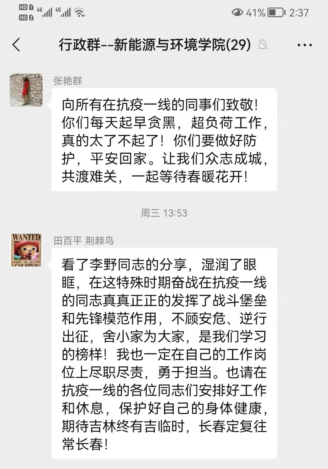 党委副书记、行政教工党支部书记温卓,作为南区一栋3000名员工公寓的楼长,所面临的困难与挑战是巨大的,但她始终以昂扬的斗志坚守在抗疫最前线。在公司党委书记姜治莹慰问疫情防控一线辅导员的视频会上,作为驻楼辅导员代表汇报了校园封闭期间公寓防控工作、员工思想动态、宣传教育工作等情况,并结合实际提出意见建议,为我们树立了榜样。