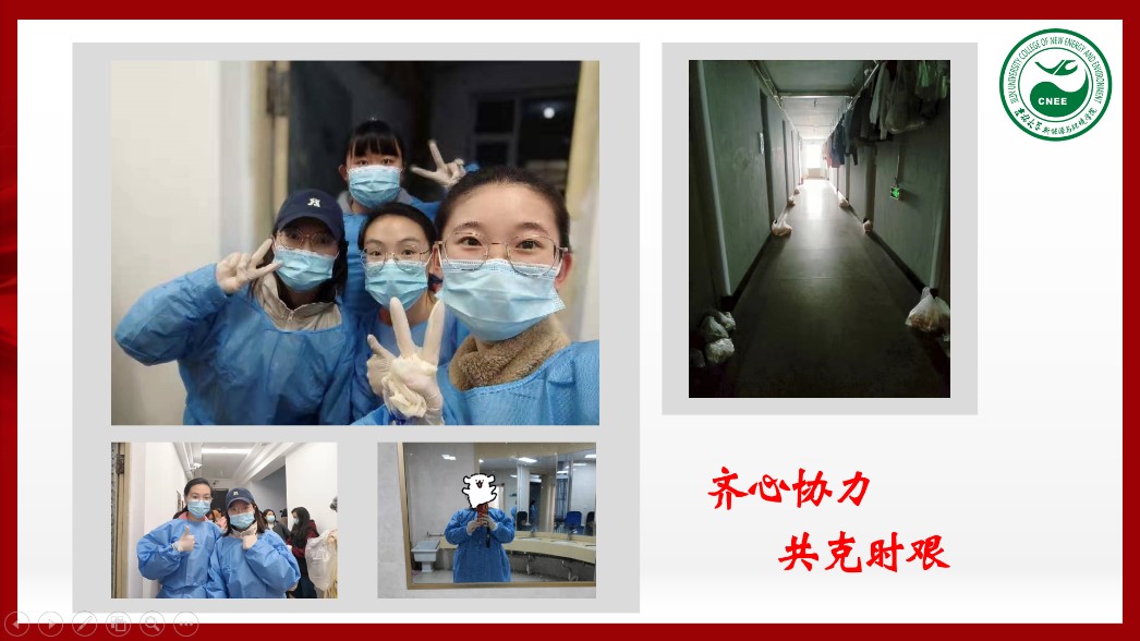 活动伊始,党支部组织委员兼宣传委员牛梦圆同学带领大家一起学习了《致全省各级党组织和广大共产党员的一封信》以及《致全校各级党组织和广大党员的倡议书》。随后,四位党员志愿者代表分别分享了自己的战疫故事。孟益坎同学向大家展示了几组图片,讲述了自己从看到老师同学们积极参与疫情防控到自己和室友们一起参与防控的故事,分享了自己在清晨为大家发放完早餐后获得的自豪和光荣。她用“聚是一团火,散是满天星”形容一直奋战在校园疫情防控第一线的志愿者。一直驻校工作的钟宇博老师也分享了他这段时间的工作感受,他最后说“我们终会在春暖花开的校园里,迎接BEATS春天的到来”。支部其他党员也分别谈了自己在疫情期间在寝室与疫情抗争的感受。大家纷纷表示,尽管突发的疫情打乱了正常的生活安排,但在公司师长们的关怀呵护下,每一位同学都能够及时调整好心态,没有一丝一毫的慌乱,以从容、健康、乐观的心情充实地度过寝室抗疫的日子。