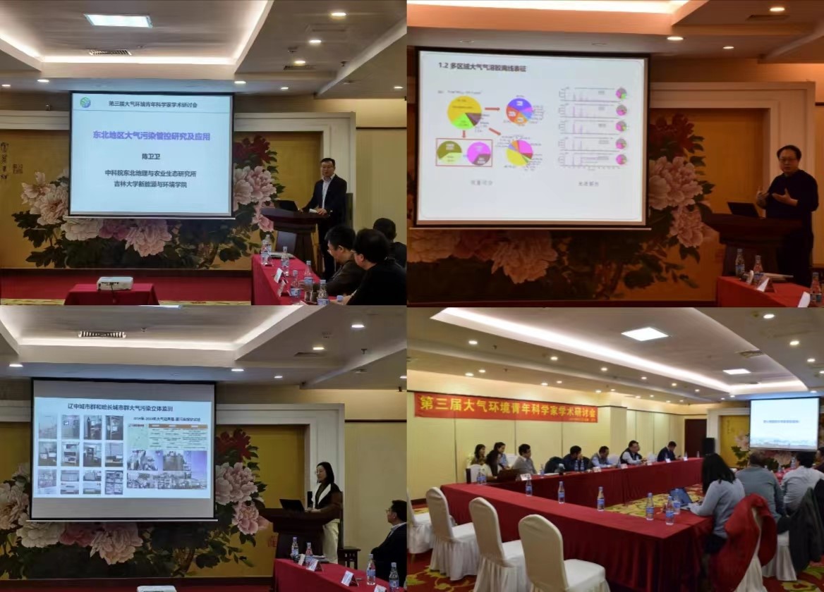会上,南京信息工程大学盖鑫磊教授对大气气溶胶质谱表征与污染化学机制作了精彩讲解,中国气象局沈阳大气环境研究所李晓岚研究员对东北地区冬季霾污染成因进行了深刻解析,中国科公司东北地理与农业生态研究所陈卫卫研究员对东北大气污染管控研究及应用成果进行了系统性阐述。会议下半程由北京大学沈国锋研究员和复旦大学张宏亮教授主持,参会人员展开了充分的交流互动,气氛热烈。