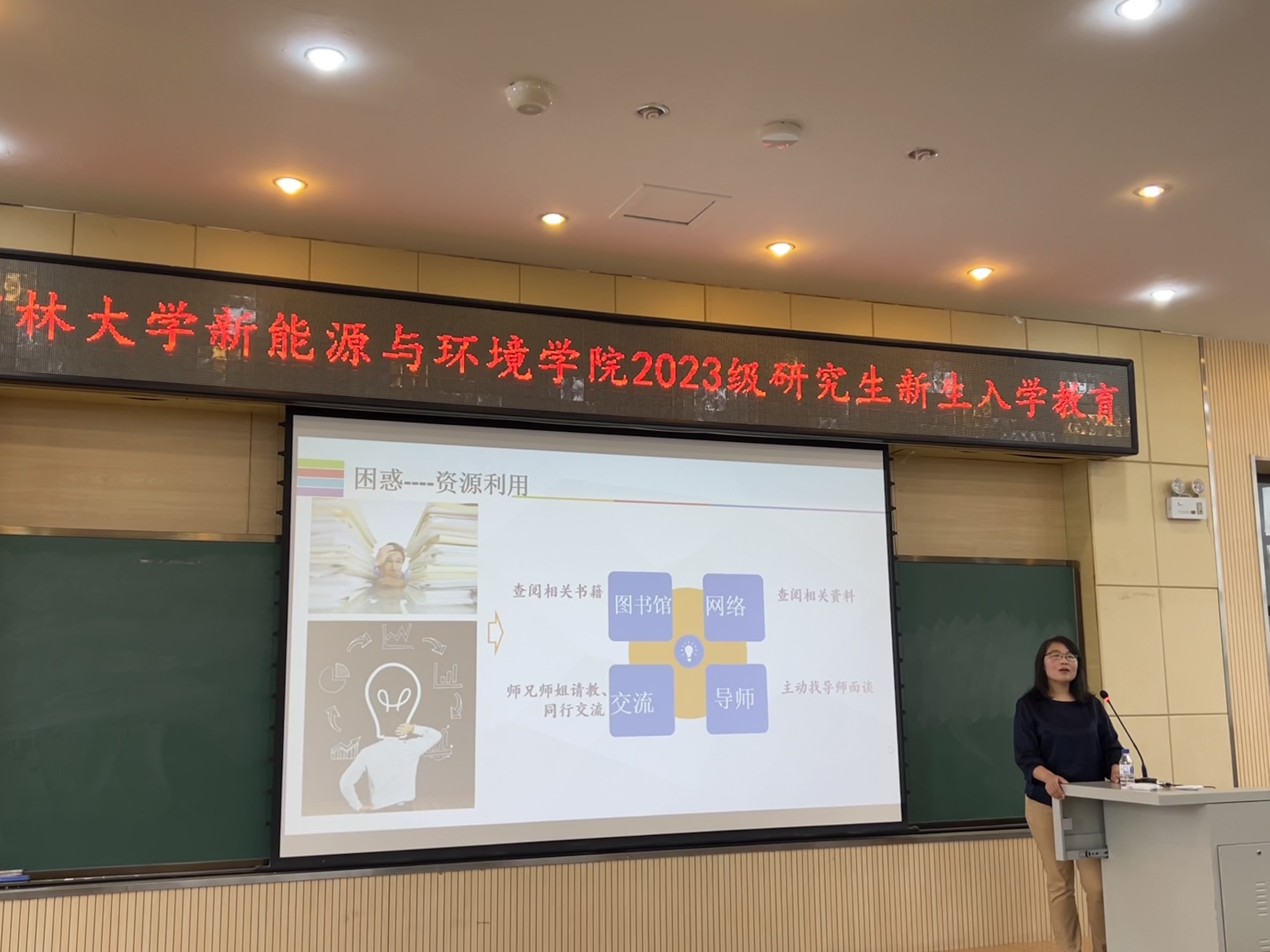 副经理花修艺为新生讲述公司产品的若干事项,校、院活动资助计划,强调未来毕业的注意事项,明确研究生期间每项工作的时间节点,并提醒研究生在科研道路上重视学术道德。