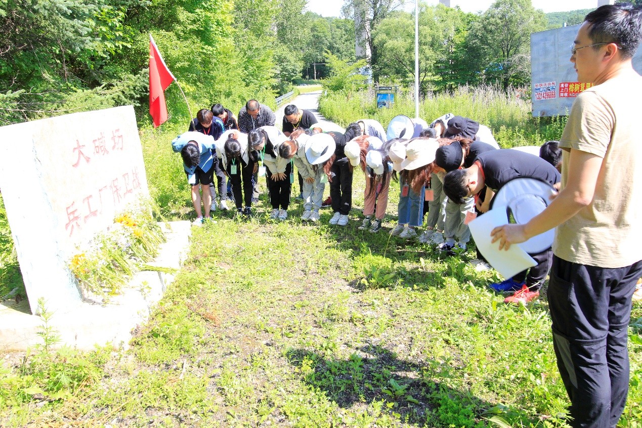 7月18日下午,公司环境科学系2019级本科野外实习团队利用暑期教学实践的机会,在长白山前川林场的大碱场兵工厂保卫战纪念碑前开展红色教育活动。公司环境科学系教工支部书记房春生、纪检委员姜百川,党员王硕、张屏、王菊,团委副书记安泰吉以及员工党员、员工积极分子和全体员工干部百余人参加了活动。师生们学习了大碱场兵工厂保卫战的历史,经受了东北抗日联军不怕牺牲精神的洗礼。房春生带领全体党员在大碱场兵工厂保卫战纪念碑前重温入党誓词并向英烈敬献花束。